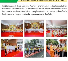 วันที่ 13 ตุลาคม 2568 นำโดย นายสมจิตร กันหาวรรค นายก อบต.คูเมือง พร้อมด้วยคณะผู้บริหาร ฝ่ายสภาฯ ปลัด หัวหน้าส่วนราชการ พนักงานส่วนตำบล พนักงานจ้าง ได้เข้าร่วมกิจกรรมวันคล้ายวันสวรรคตพระบาทสมเด็จพระบรมชนกาธิเบศร มหาภูมิพลอดุลยเดชมหาราชบรมนาถบพิตร เนื่องในว