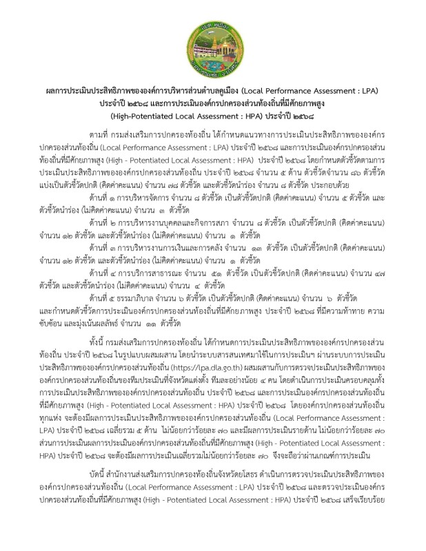 หัวข้อ :: ผลการประเมินประสิทธิภาพขององค์การบริหารส่วนตำบลคูเมือง ประจำปี 2568