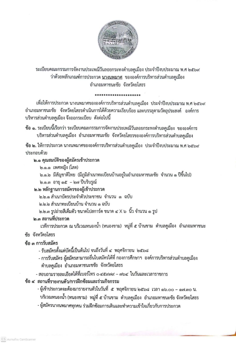 หลักเกณฑ์การประกวดนางนพมาศ ขององค์การบริหารส่วนตำบลคูเมือง 2568
